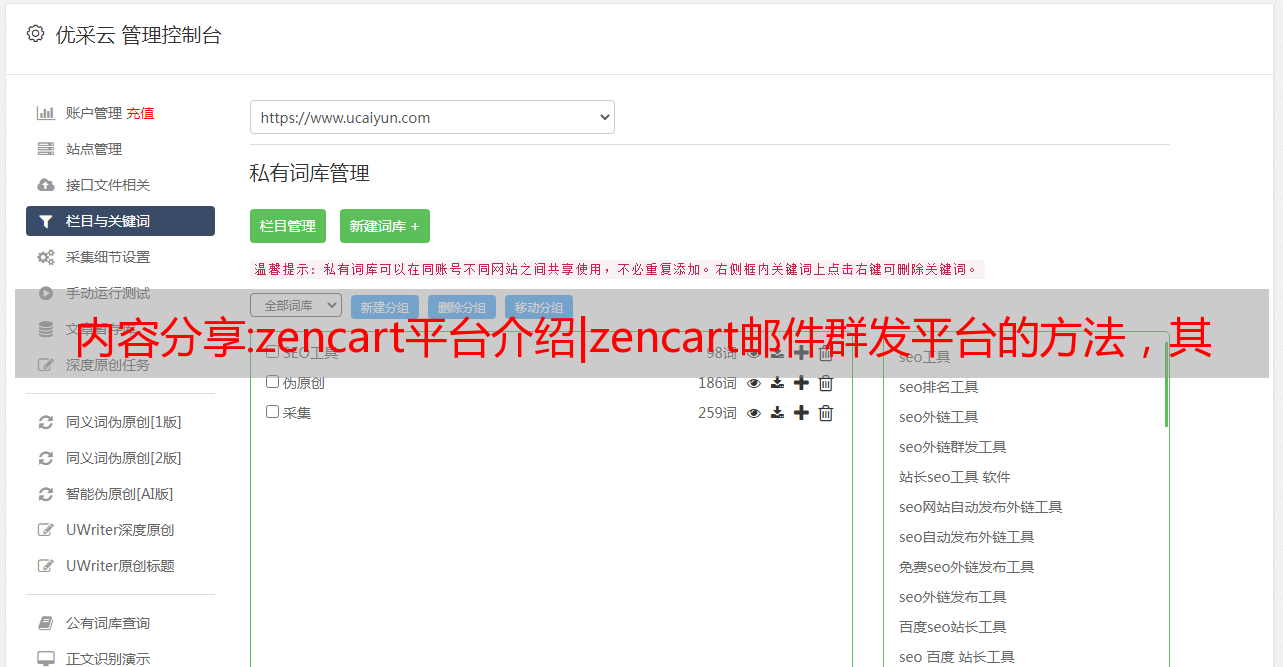 优采云 发布时间: 2022-09-30 17:38内容分享:zencart平台介绍|zencart邮件群发平台的方法,其他平台可以参考
