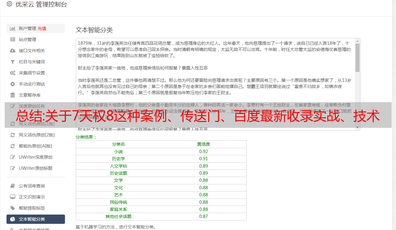 优采云 发布时间: 2022-09-30 21:07总结:关于7天权8这种案例、传送门、百度最新收录实战、技术+变现完整剖析