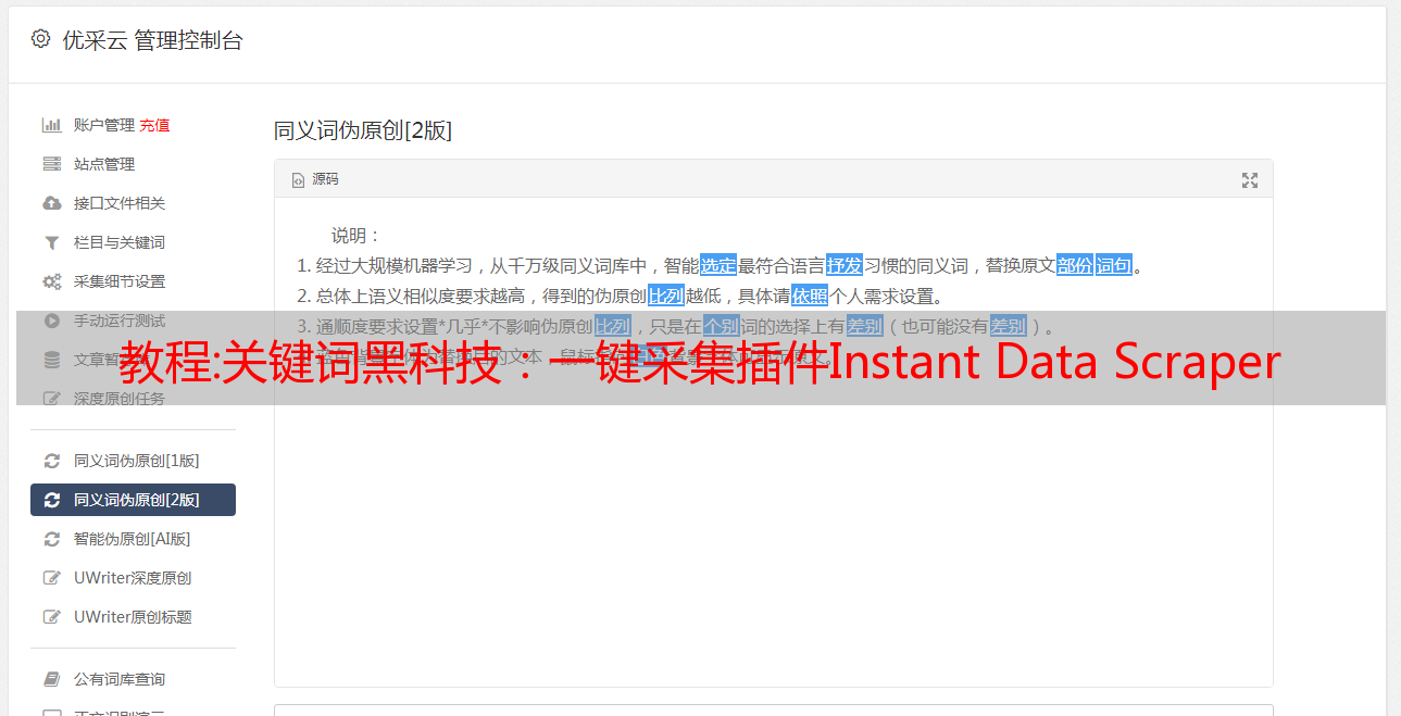 优采云 发布时间: 2022-10-01 13:14教程:关键词黑科技:一键采集插件Instant Data Scraper