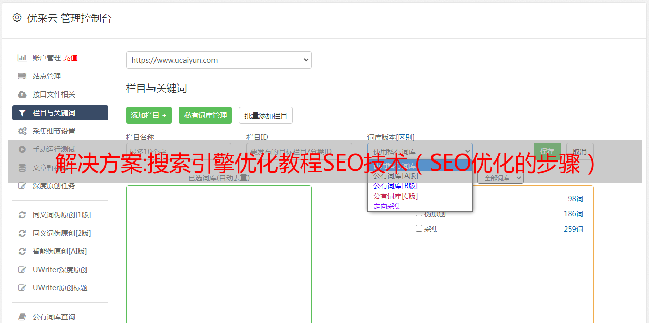 优采云 发布时间: 2022-10-01 15:10解决方案:搜索引擎优化教程SEO技术(SEO优化的步骤)