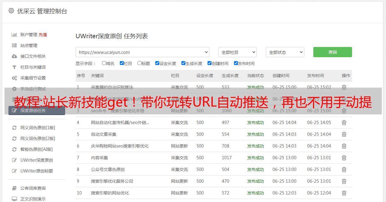 优采云 发布时间: 2022-10-02 00:10教程:站长新技能get!带你玩转URL自动推送,再也不用手动提交了!