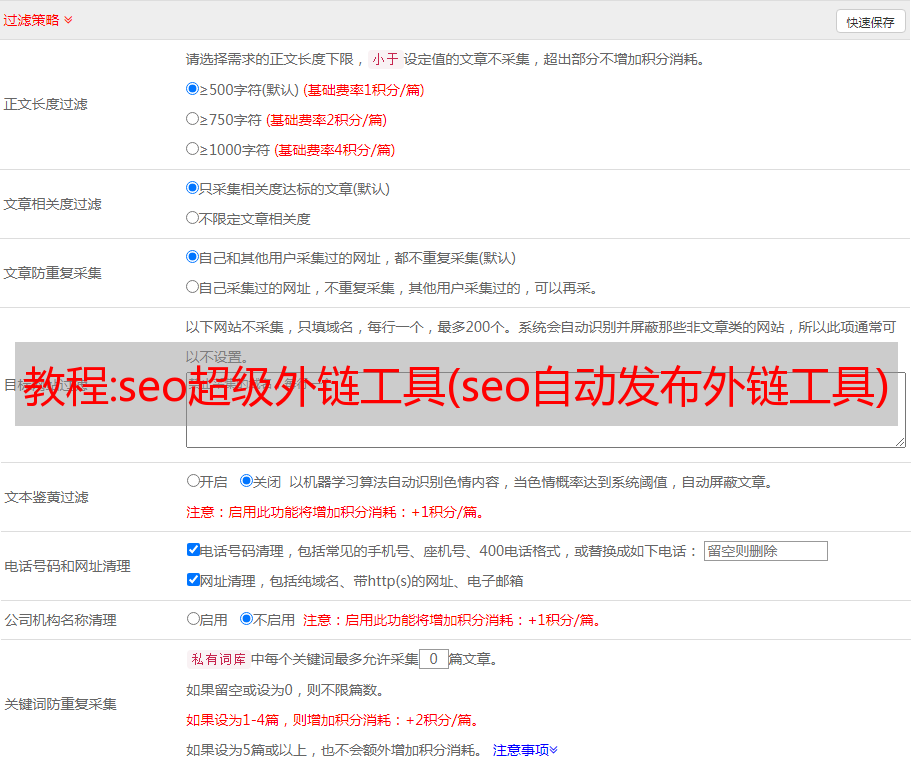 超级外链无需人工工具,自动批量推广你的网站,增加外链,让你的网站排名飙升;创建产品和文章内容,并发布在其他平台上分享一般有3种方式,俗称SEO的外链。一种是外包,它涉及很多陷阱并且需要花钱。不推荐。第二个很难。