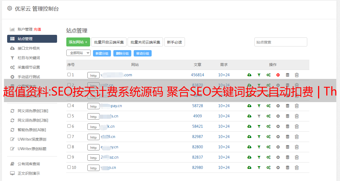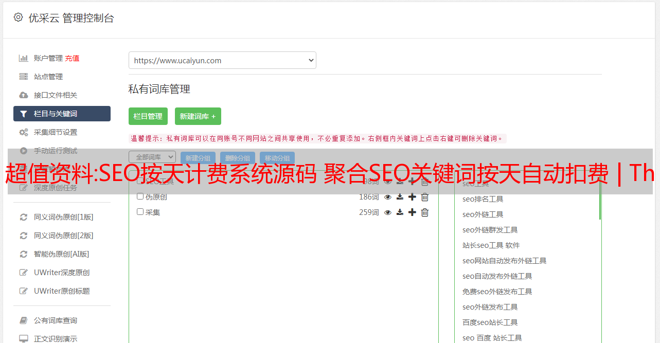 优采云 发布时间: 2022-10-02 19:12超值资料:SEO按天计费系统源码 聚合SEO关键词按天自动扣费 | Thinkphp框架