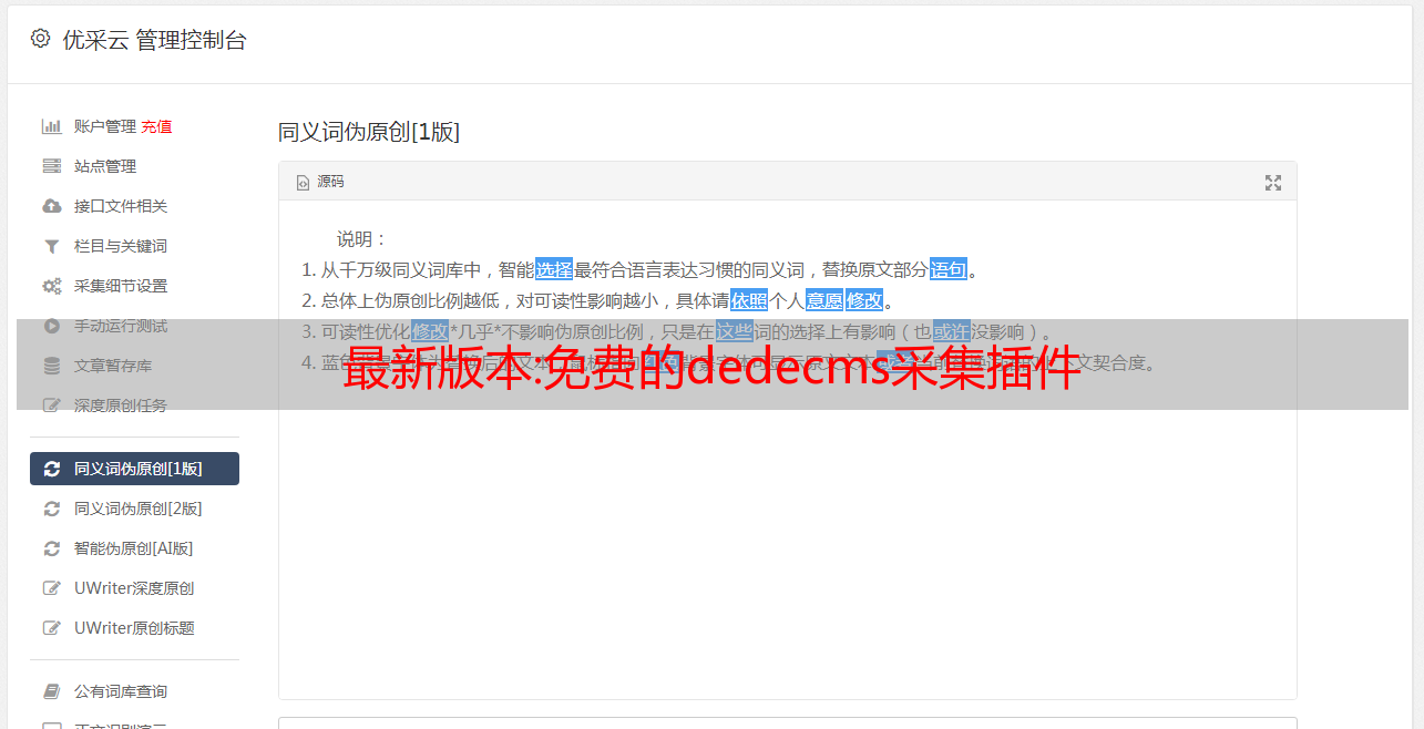 优采云 发布时间: 2022-10-03 00:12最新版本:免费的dedecms采集插件