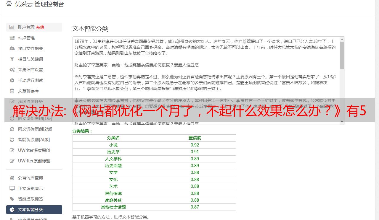 优采云 发布时间: 2022-10-03 15:11解决办法:《网站都优化一个月了,不起什么效果怎么办?》有5个想法