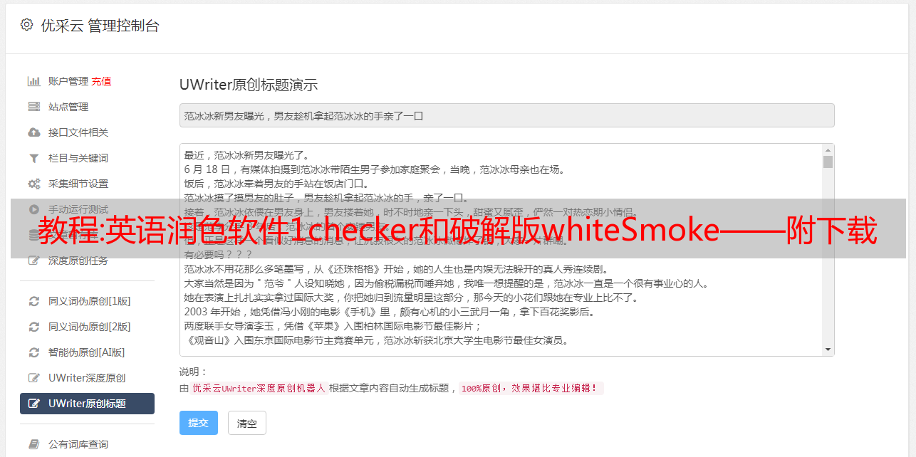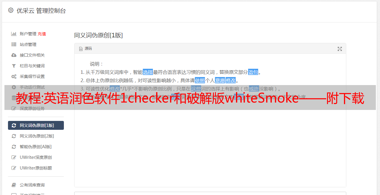 优采云 发布时间: 2022-10-04 13:22教程:英语润色软件1checker和破解版whiteSmoke——附下载地址