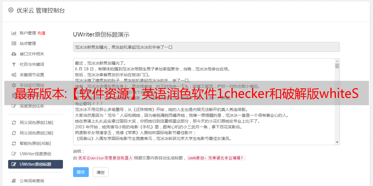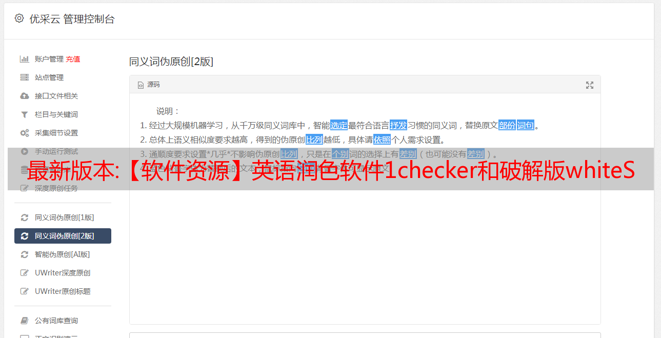 优采云 发布时间: 2022-10-04 14:12最新版本:【软件资源】英语润色软件1checker和破解版whiteSmoke——附下载地