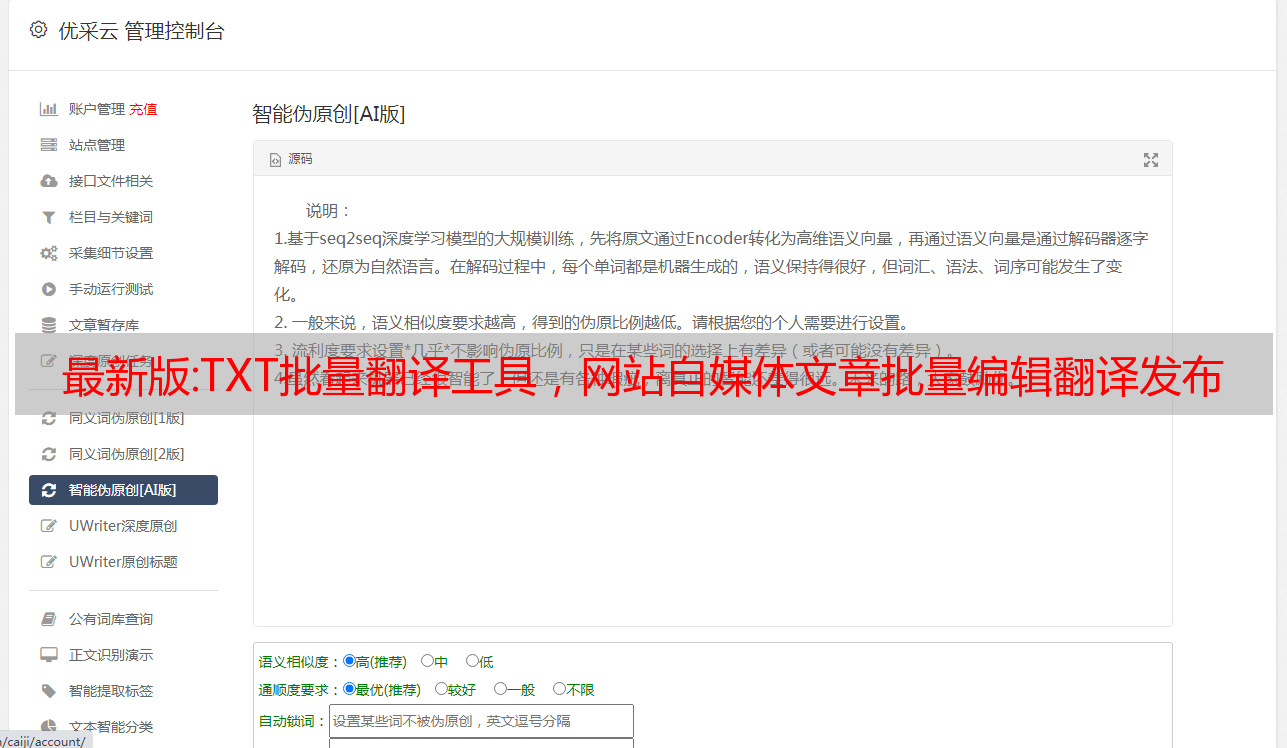 最新版:TXT批量翻译工具,网站自媒体文章批量编辑翻译发布