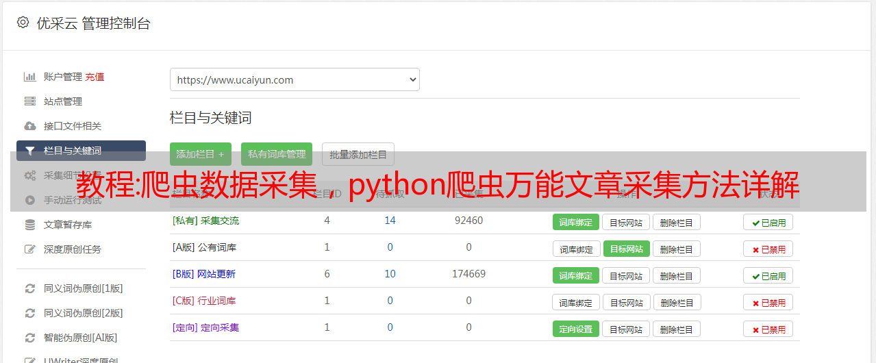 爬虫数据采集你的网站是Empirecms、易友cms、Empirecms、织梦cms、Applecms、人人网cms、水户cms、云游cms、小旋风蜘蛛池、THINKCMF、PHPcmsV9、PBootcms、Destoon、Ocean cms、Extremecms、EMLOG、TYPECHO、WXYcms、TWcms、紫比主题、迅锐cms等cms都可以发布文章关键词pan采集伪原创。