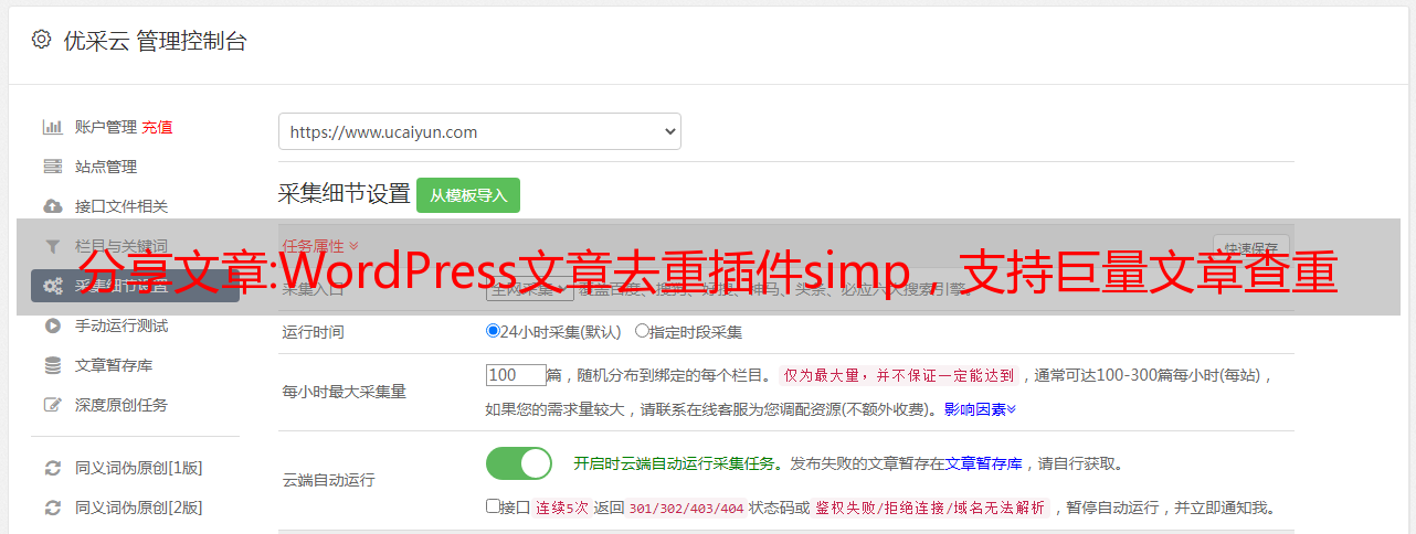 优采云 发布时间: 2022-10-06 00:08分享文章:WordPress文章去重插件simp,支持巨量文章查重