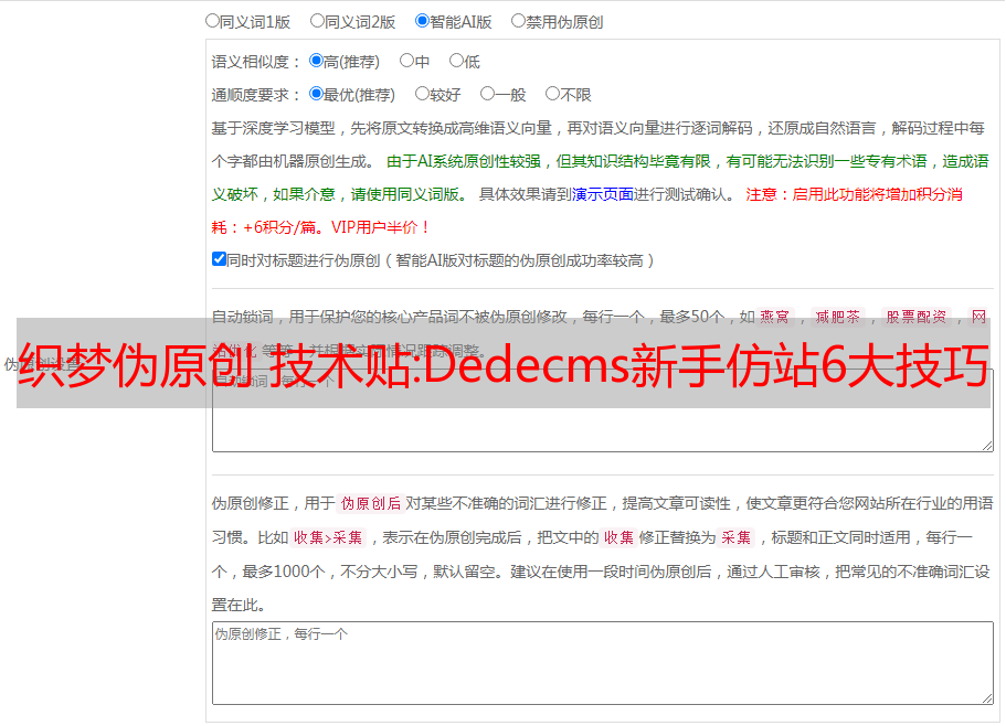 织梦伪原创 技术贴:Dedecms新手仿站6大技巧