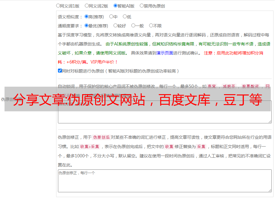 分享文章:伪原创文网站,百度文库,豆丁等很精华的文章