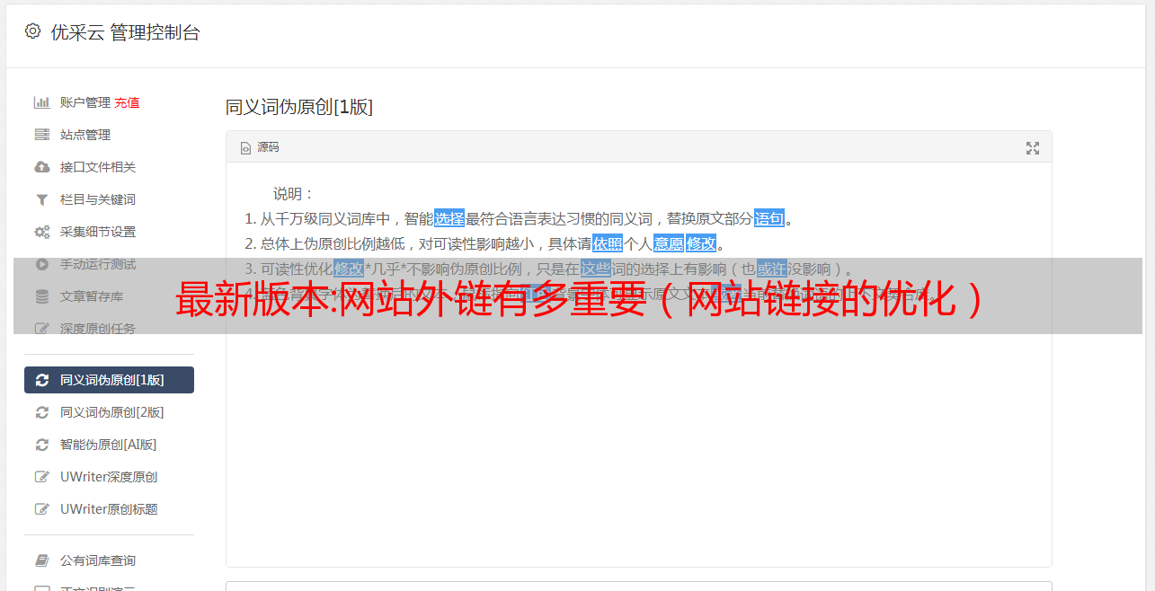 写作包括软文自己销售产品,发布到相关文章网站是英文网站优化的重要手段。一个好的文章不仅会带来客观的网站流量,还会为品牌树立良好的形象。SEO文章工具的作用是帮助站长写文章,找到文章,发送文章,把繁琐的工作自动化,减轻负担。