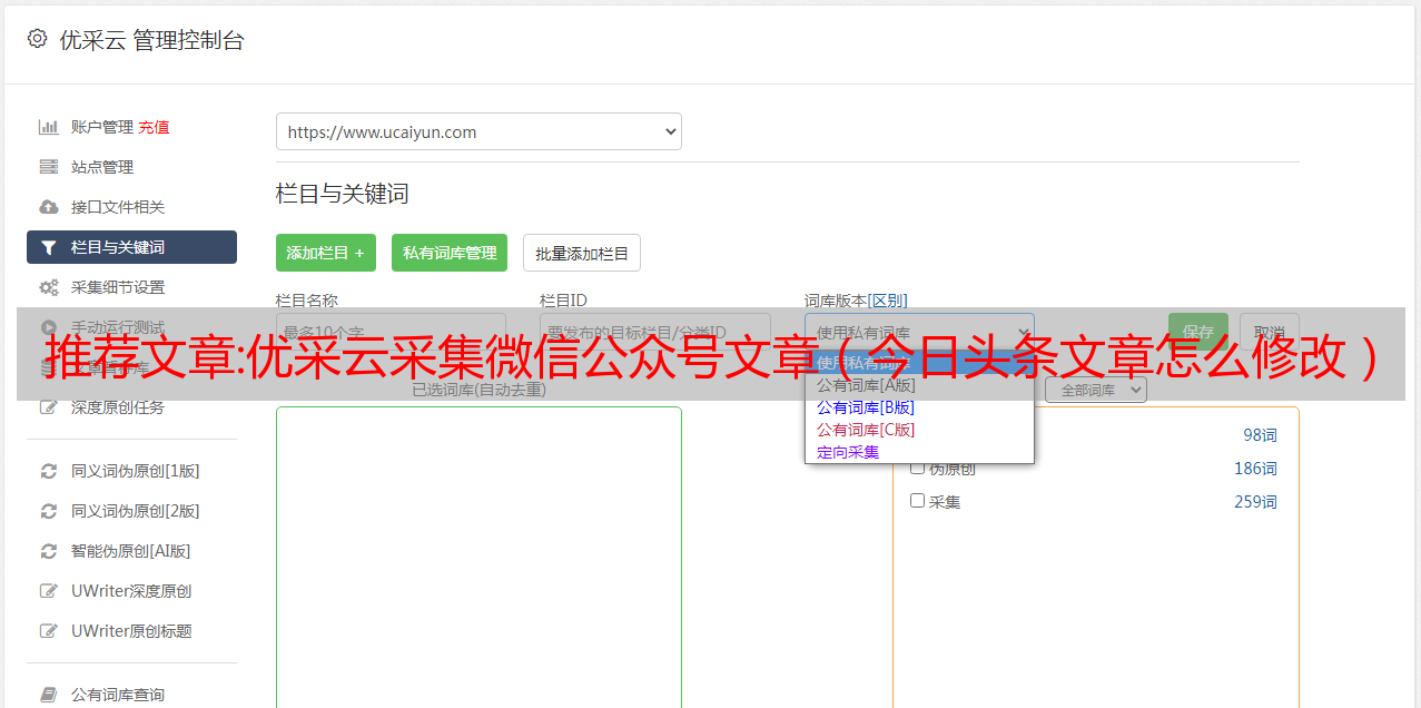 6. 优采云采集关键词