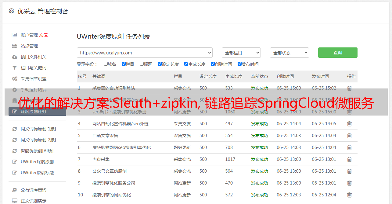 优采云 发布时间: 2022-10-07 19:08优化的解决方案:Sleuth+zipkin, 链路追踪SpringCloud微服务
