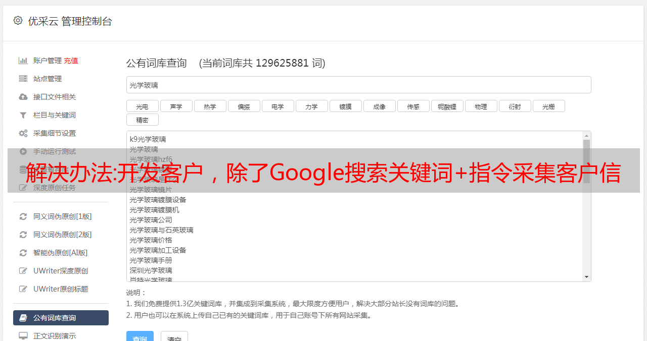 优采云 发布时间: 2022-10-08 19:08解决办法:开发客户,除了Google搜索关键词+指令采集客户信息,还有哪些渠道方法?