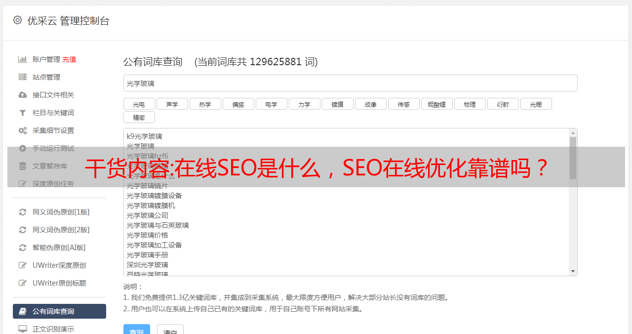 优采云 发布时间: 2022-10-08 19:19干货内容:在线SEO是什么,SEO在线优化靠谱吗?