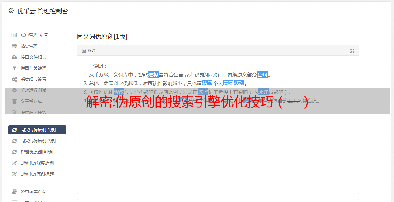 优采云 发布时间: 2022-10-09 00:09解密:伪原创的搜索引擎优化技巧(一)