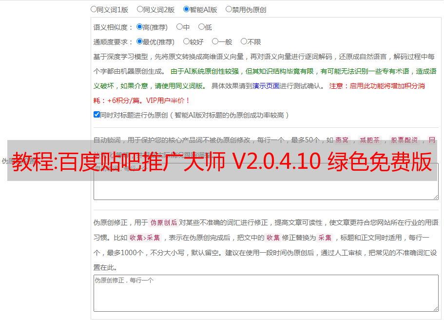 4. 文章采集用于发帖和回复,对于采集的文章批次伪原创,不再担心被删除;