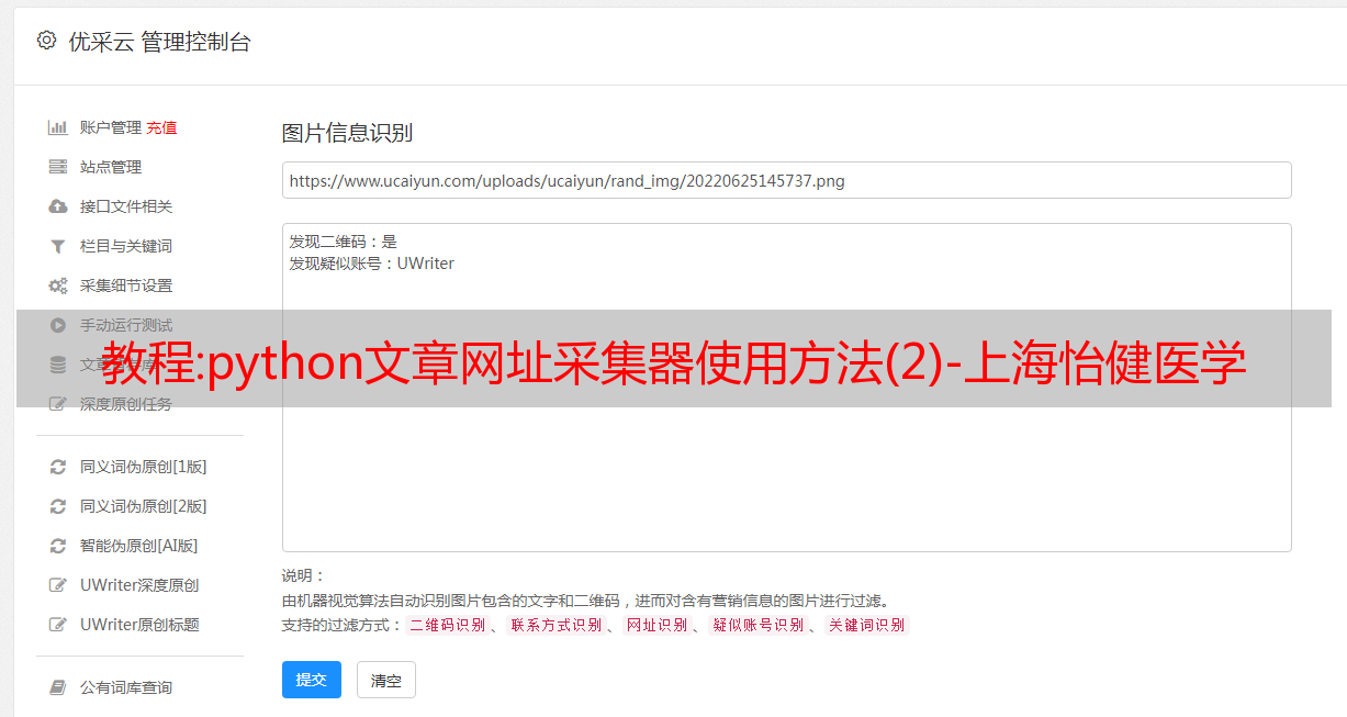 优采云 发布时间: 2022-10-09 02:06教程:python文章网址采集器使用方法(2)-上海怡健医学