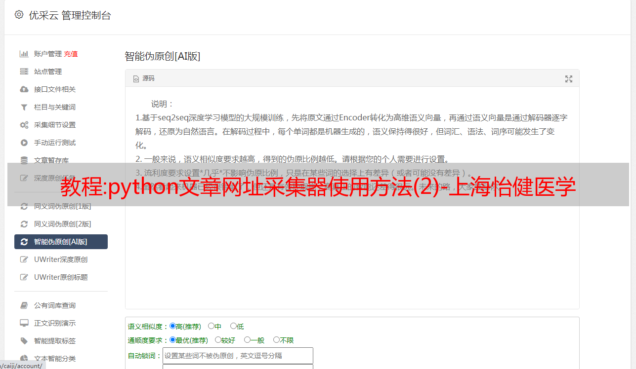 教程:python文章网址采集器使用方法(2)-上海怡健医学