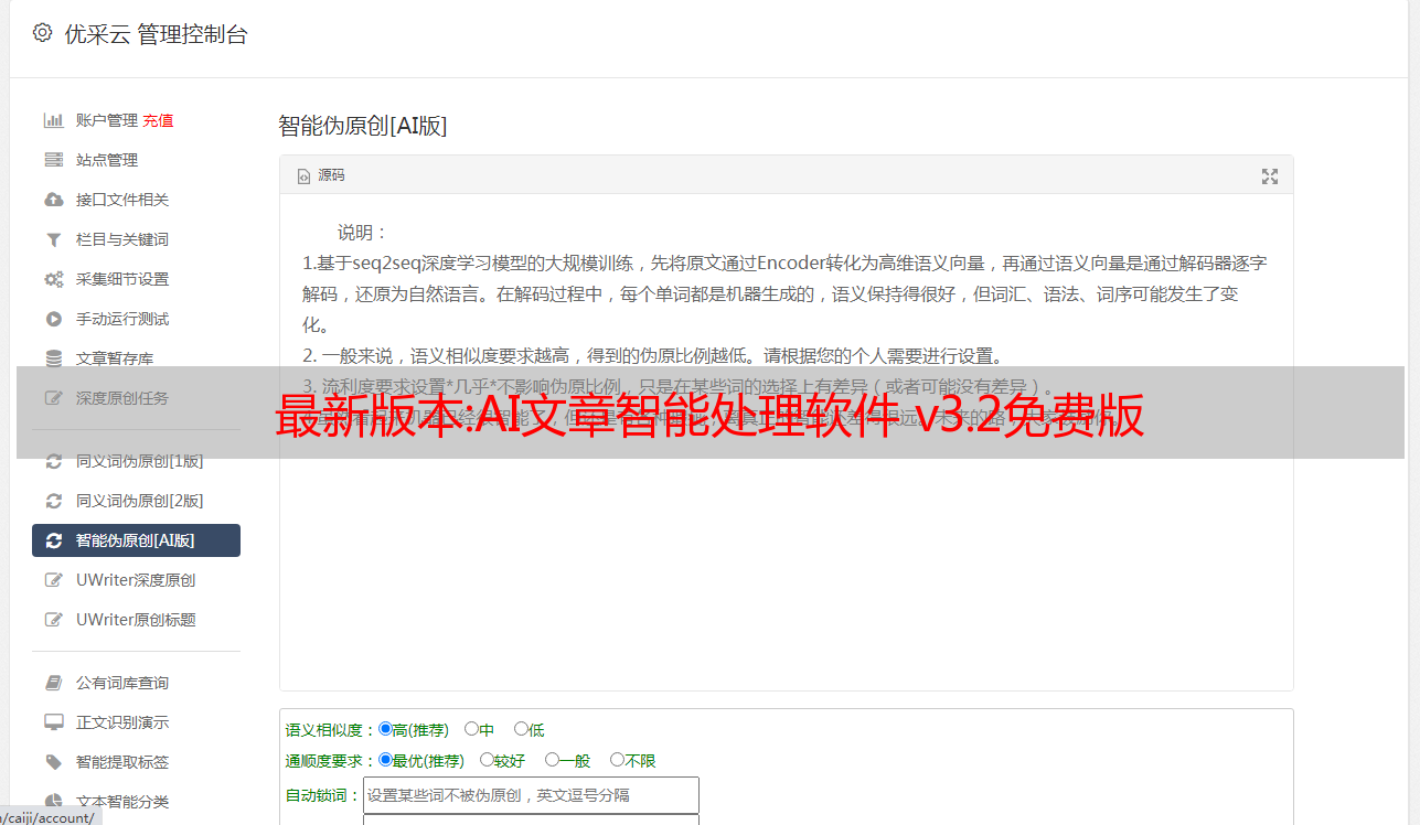 优采云 发布时间: 2022-10-09 14:09最新版本:AI文章智能处理软件 v3.2免费版