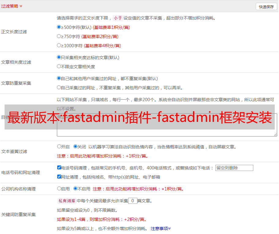 fastadmin 插件,什么是 fastadmin 插件,FastAdmin – 基于 ThinkPHP 和 Bootstrap 的极速后台开发框架,而 fastadmin 插件是基于 fastadmin 框架的本地插件,汇集了所有 SEO 功能:自动文章更新,自动伪原创,自动排名收录查询,主动推送搜索引擎收录。详细参考图片教程