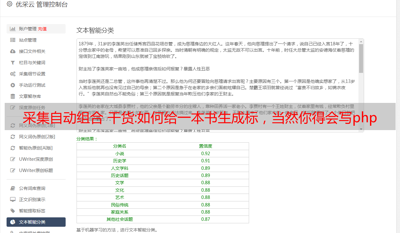 优采云 发布时间: 2022-10-10 13:09采集自动组合 干货:如何给一本书生成标,当然你得会写php