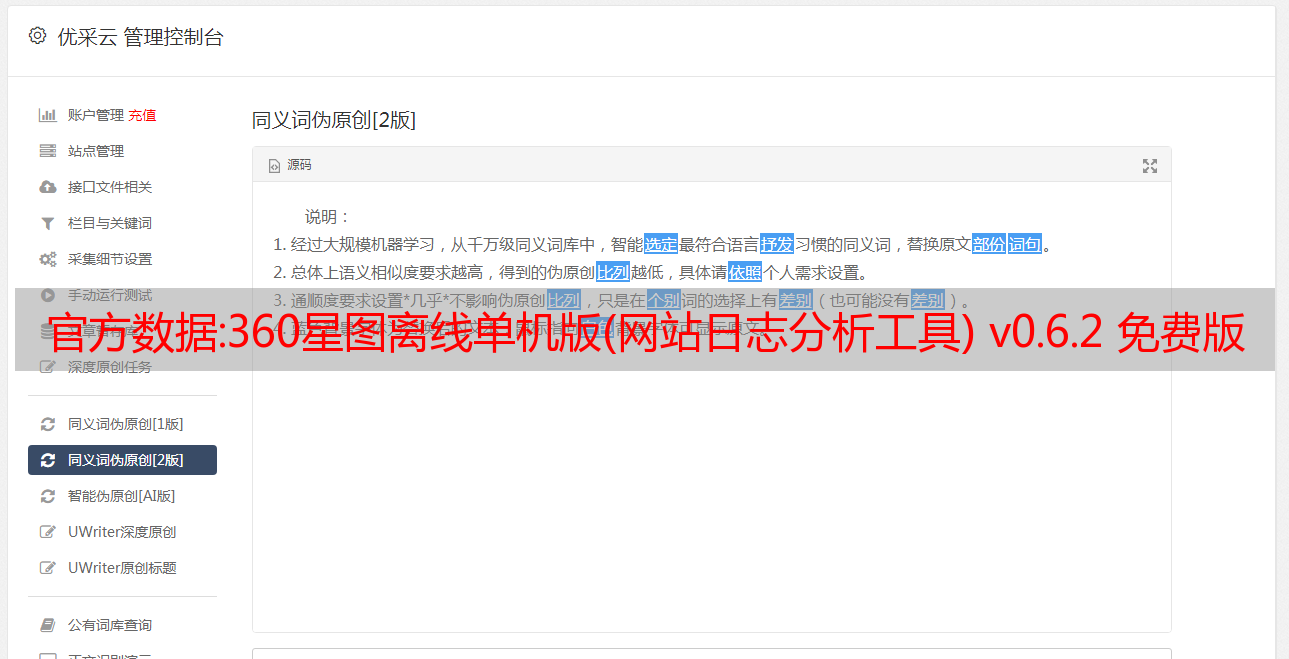 优采云 发布时间: 2022-10-12 03:14官方数据:360星图离线*敏*感*词*(网站日志分析工具) v0.6.2 免费版