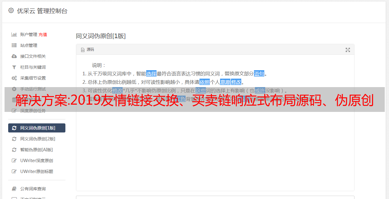 解决方案:2019友情链接交换、买卖链响应式布局源码、伪原创文章和seo外链工具源码一站合