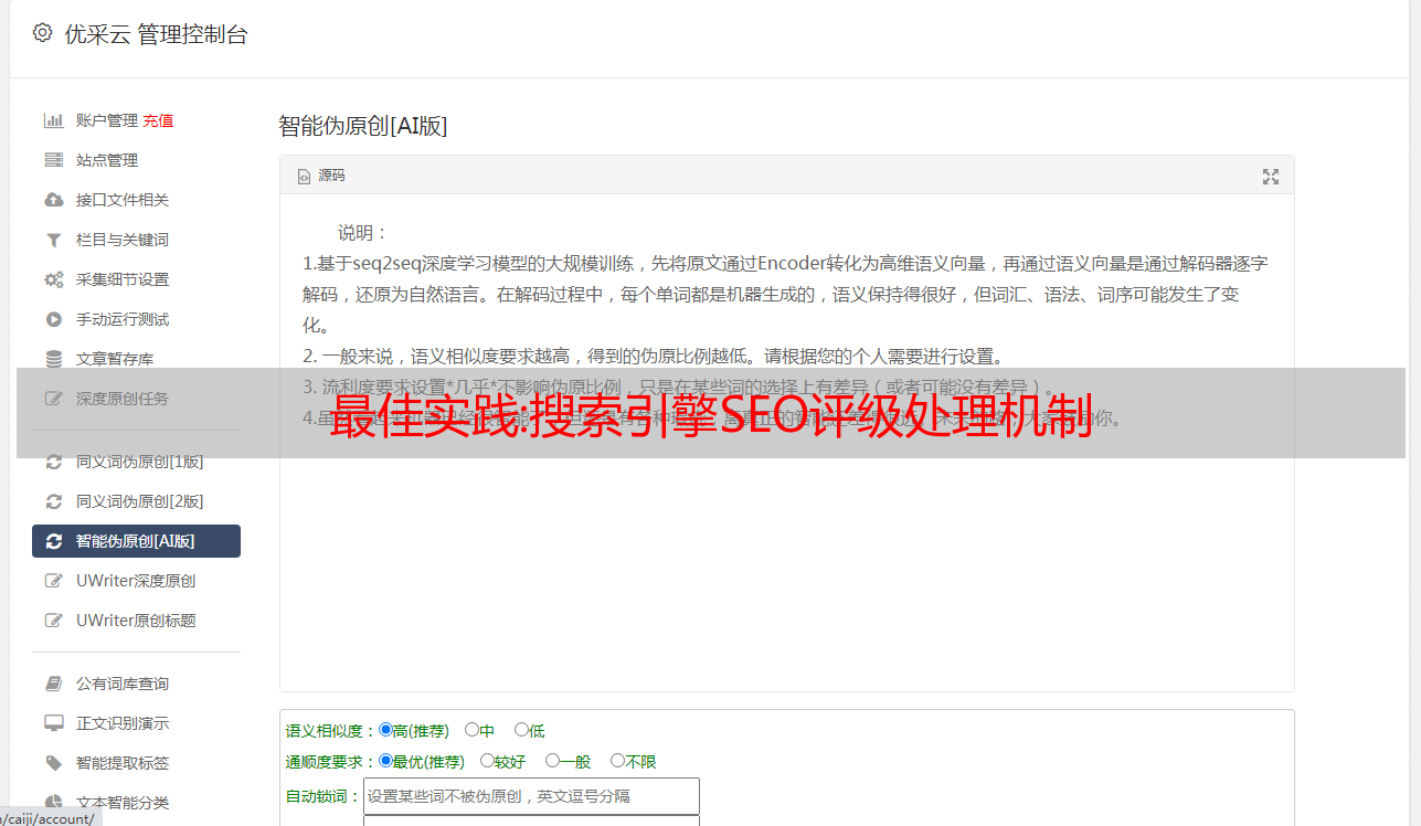 AI文章智能处理软件是一款智能的文章伪原创工具,可以帮助用户将文章重新组合成一个新的文章,以及材料采集,是一个很好的文章处理工具。