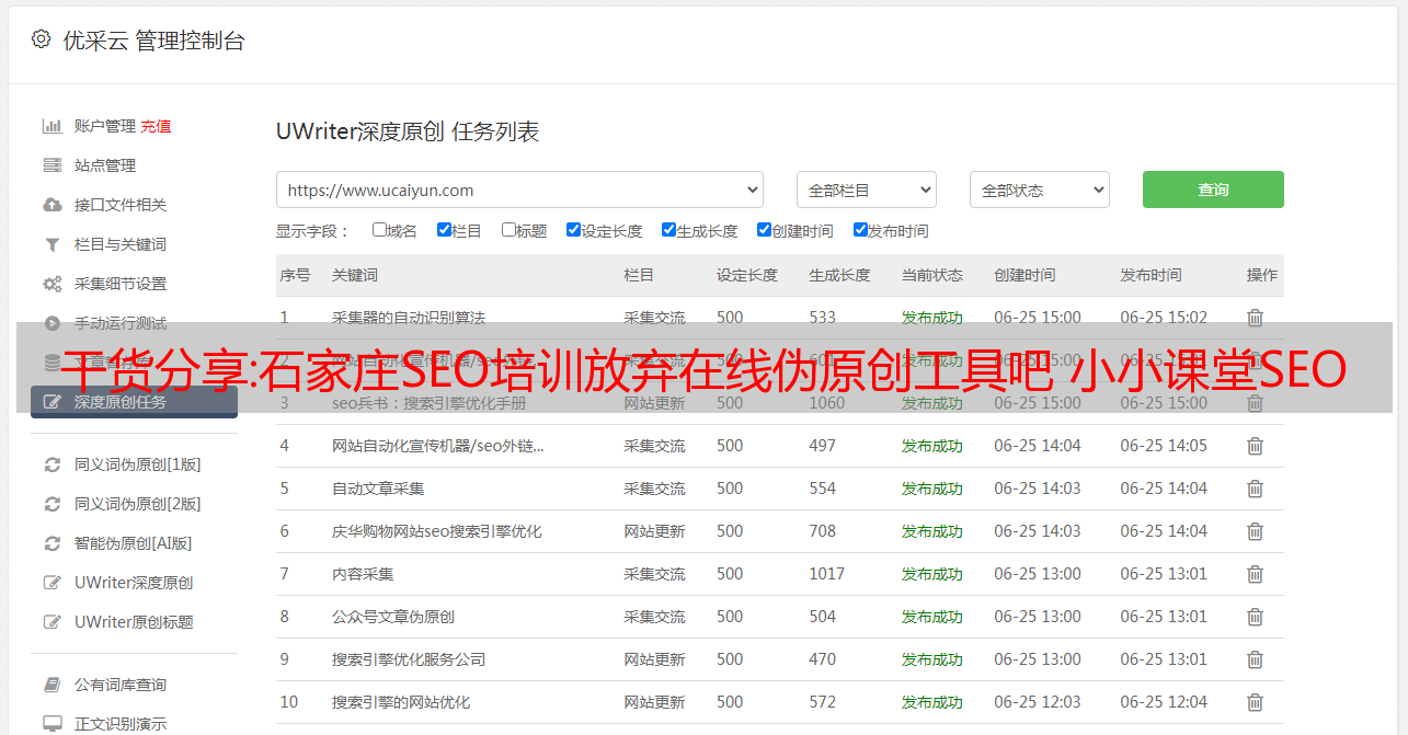 优采云 发布时间: 2022-10-13 02:23干货分享:石家庄SEO培训放弃在线伪原创工具吧 小小课堂SEO培训