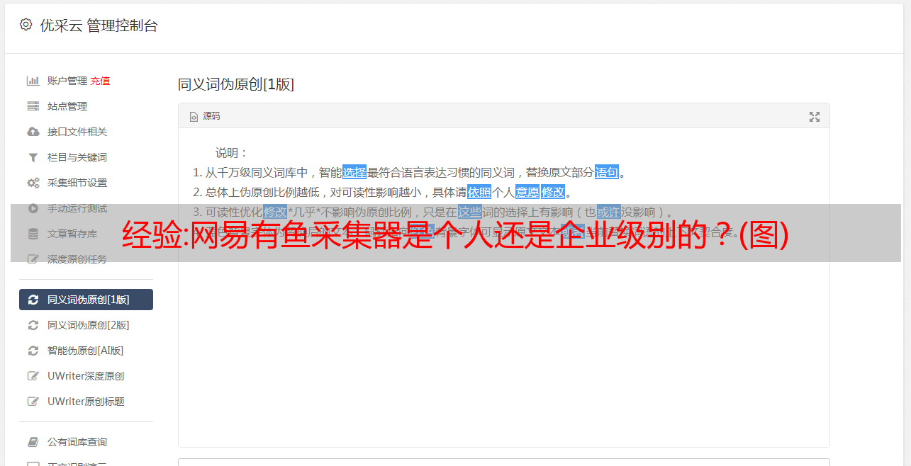 优采云 发布时间: 2022-10-13 11:20经验:网易有鱼采集器是个人还是企业级别的?(图)