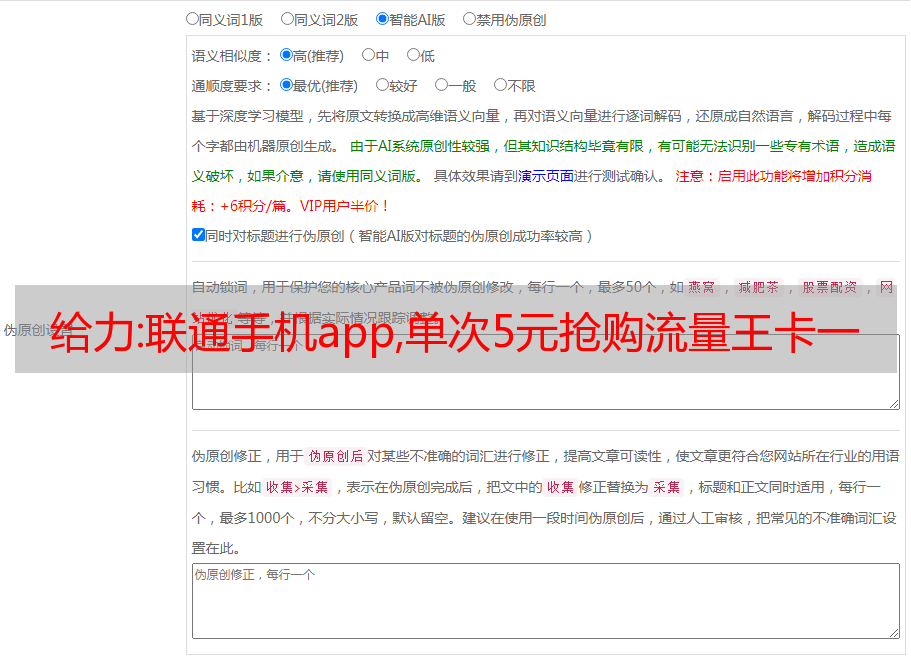 优采云 发布时间: 2022-10-13 16:17给力:联通手机app,单次5元抢购流量王卡一天的流量