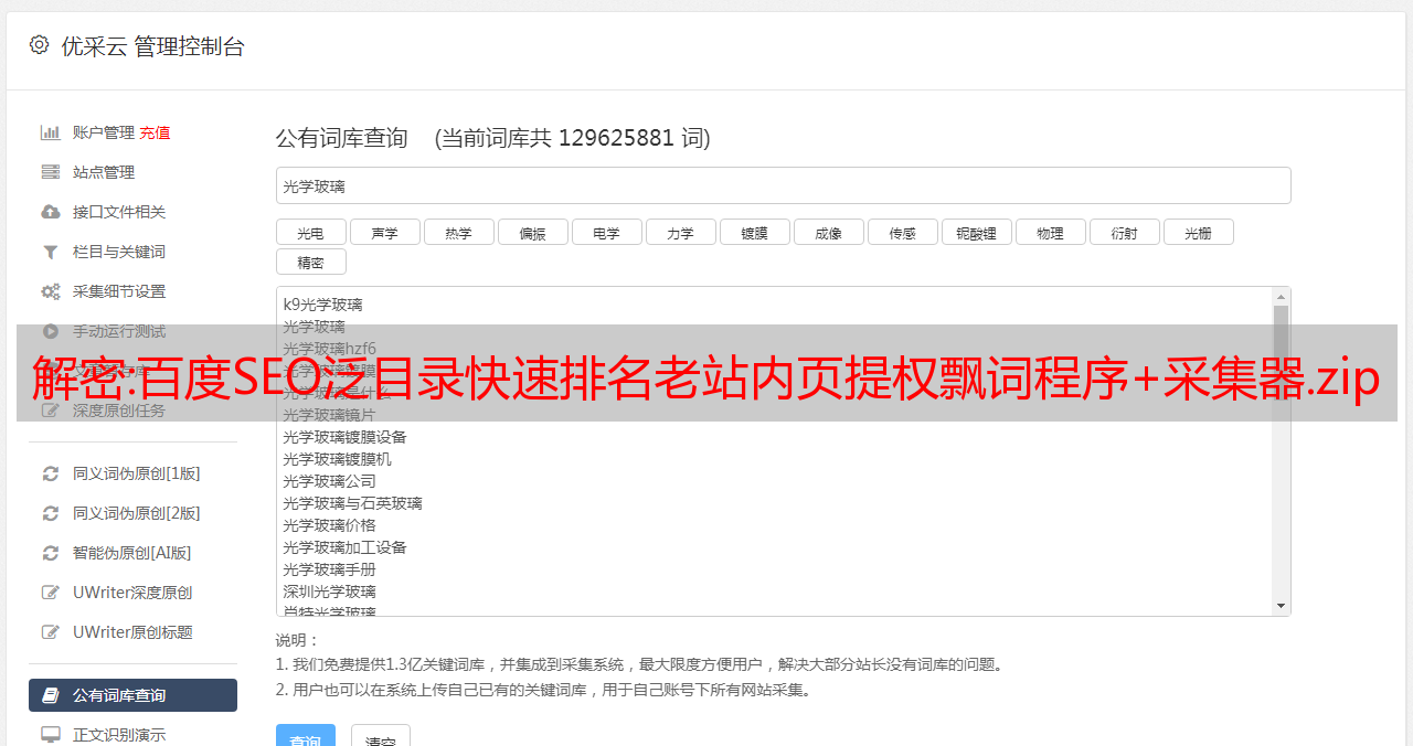 解密:百度SEO泛目录快速排名老站内页提权飘词程序+采集器.zip