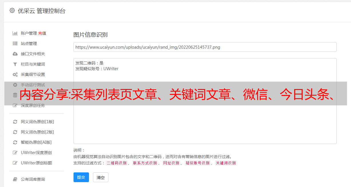 首先,依托优采云软件独有的通用体识别智能算法,任何网页正文的自动提取准确率都可以达到95%以上。