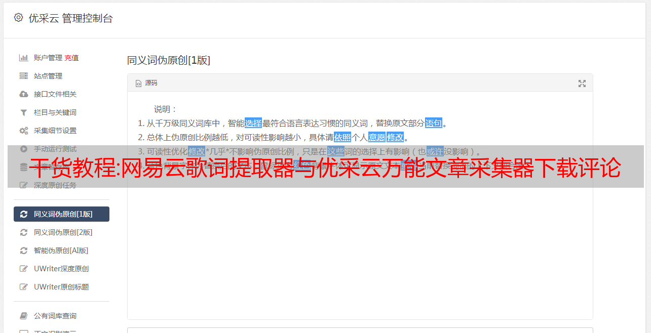 干货教程:网易云歌词提取器与优采云万能文章采集器下载评论软件详情对比
