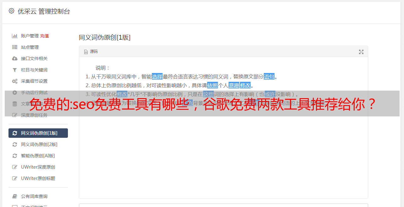 优采云 发布时间: 2022-10-15 00:20免费的:seo免费工具有哪些,谷歌免费两款工具推荐给你?