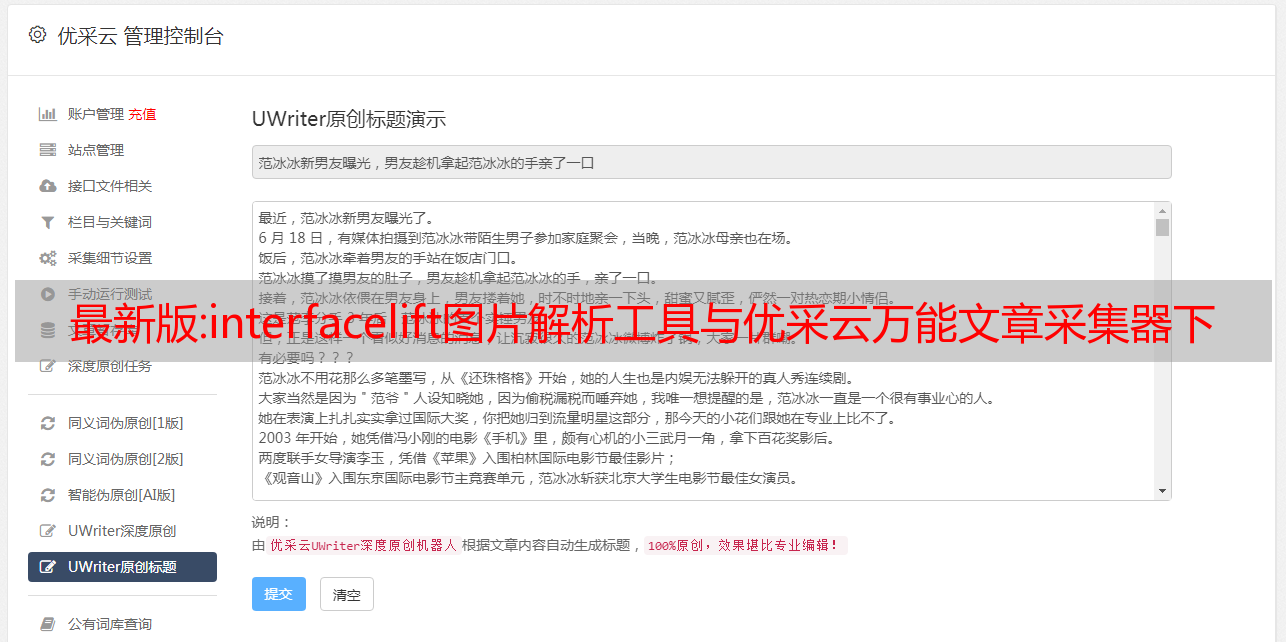 最新版:interfacelift图片解析工具与优采云万能文章采集器下载评论软件详情对比