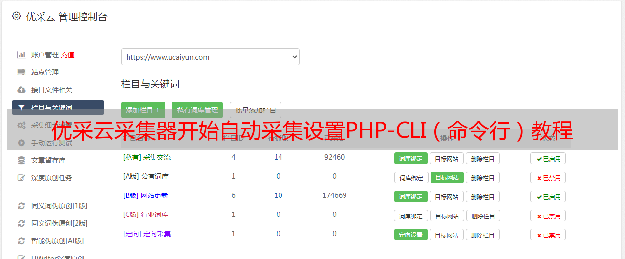 优采云采集器开始自动采集设置PHP-CLI(命令行)教程