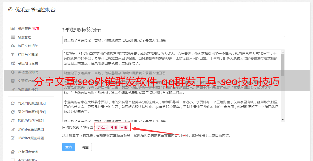 优采云 发布时间: 2022-10-16 08:22分享文章:seo外链群发软件-qq群发工具-seo技巧技巧