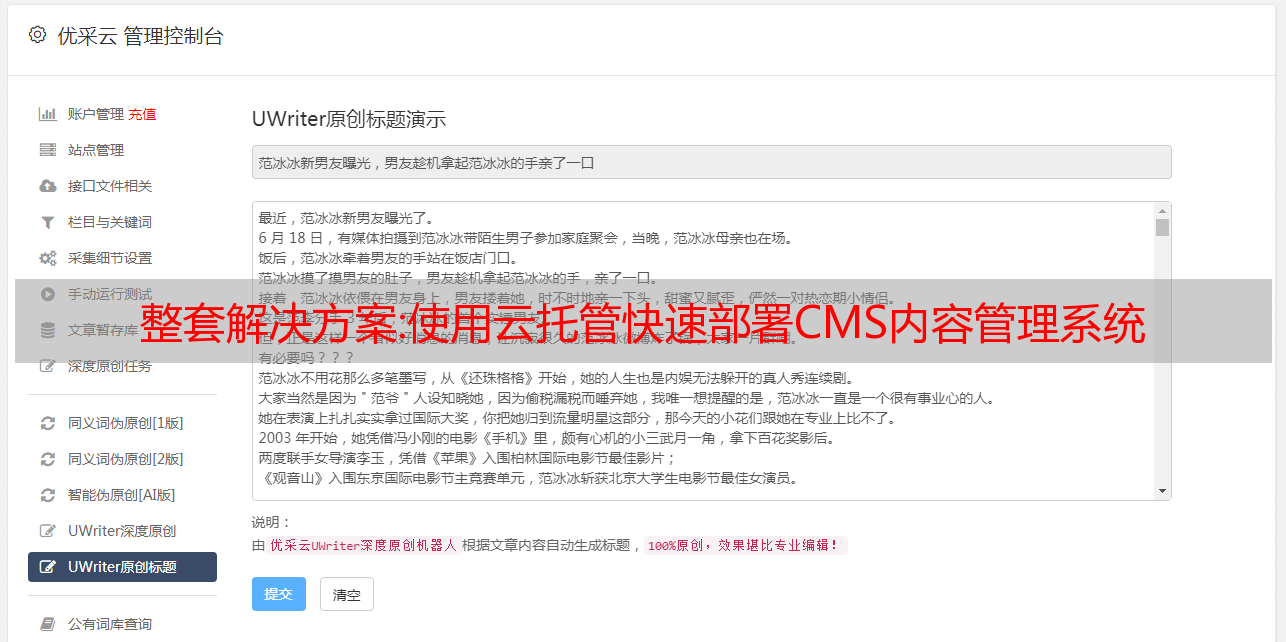 优采云 发布时间: 2022-10-16 22:13整套解决方案:使用云托管快速部署CMS内容管理系统