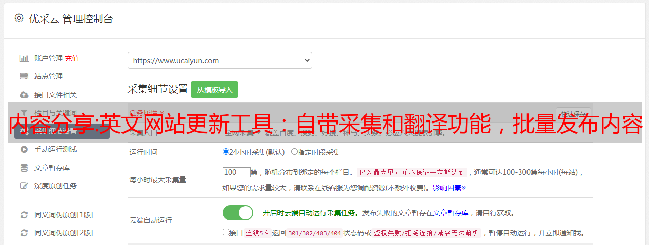 内容分享:英文网站更新工具:自带采集和翻译功能,批量发布内容