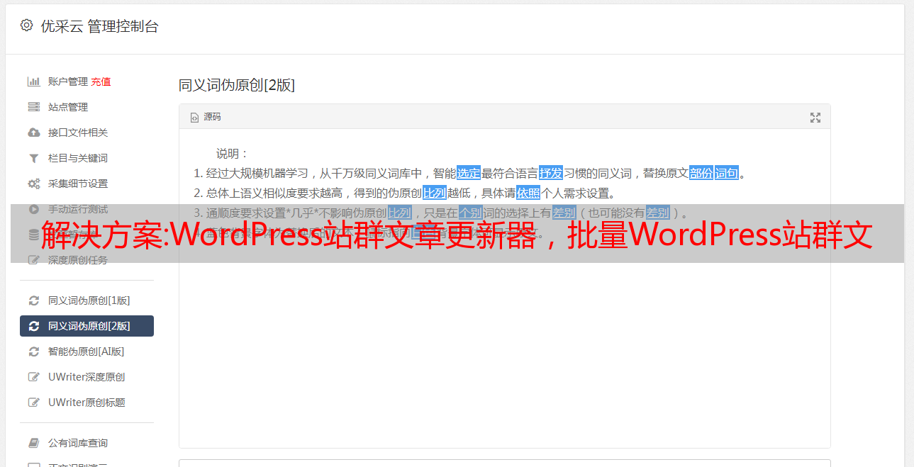 优采云 发布时间: 2022-10-17 08:35解决方案:WordPress站群文章更新器,批量WordPress站群文章管理