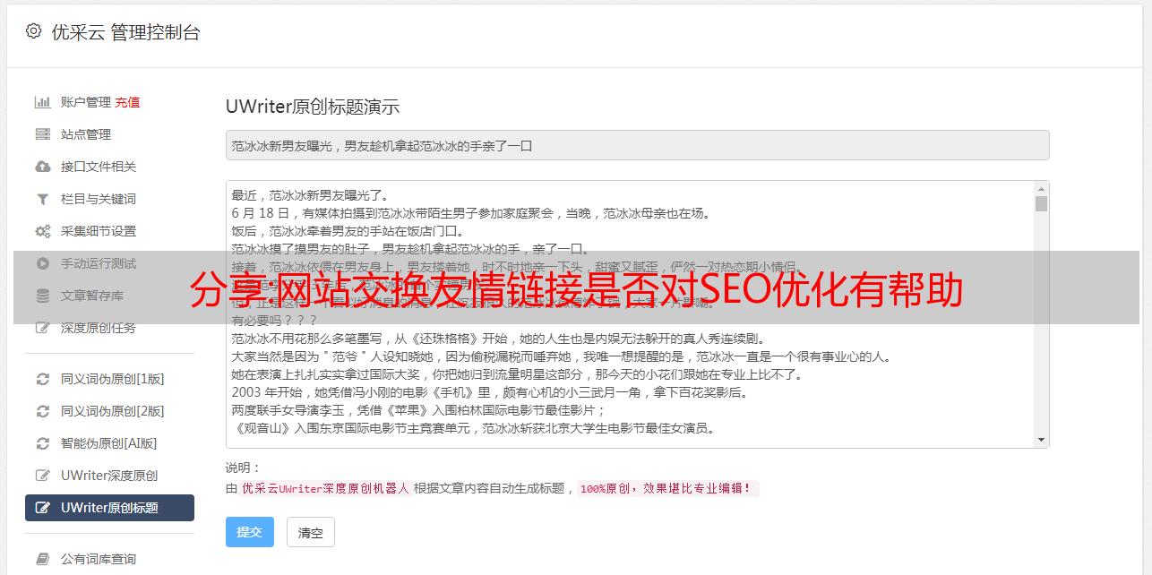 无论您有成百上千个不同的cms网站,统一管理都是可能的。一个人维护数百个 网站文章> 更新不是问题。这个网站插件还配备了很多SEO功能,可以在采集通过软件发布的伪原创的同时提高很多SEO优化。
