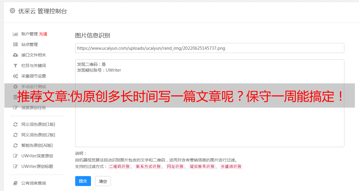 伪原创多长时间写一篇文章呢?首先,从网站提交到审核的时间算起,我算是在广州写的原创文章,一个月2篇,通常周末休息时间安排写写小文章,一般工作日天刚好到1周五分钟写一篇文章这样子。申请原创很麻烦,并且一次申请两个链接,还有涉及抄袭的,要申请很多次才能过,两次申请就是20多篇!一个月弄2篇文章的话,保守一周能搞定!提醒下大家,广州很多网站只要过初审原创,如果非原创号就不要申请了,他们主要弄非原创,不收初审的费用,搞原创的,干这个,算是投资不赚钱!现在我每天大概1000左右发原创文章,写了大概800篇小文章!全是20万字左右!应该在月底能过初审!今天我会为大家分享原创标识的方法和实例!方法上来讲,这个是作者在后台搜的有原创标识的文章,各位看看,如果大家有认识的人能帮忙提交原创的,可以帮忙的尽快帮忙到广州几家有原创标识的商家提交到网站,这个可以积累,其它资源网,正在起步,估计还没有搞好!积极联系我,我给你的资源需要市场先付费的方式才能给到你!肯定没有广州这边服务好!方式上也在进行转型!。
