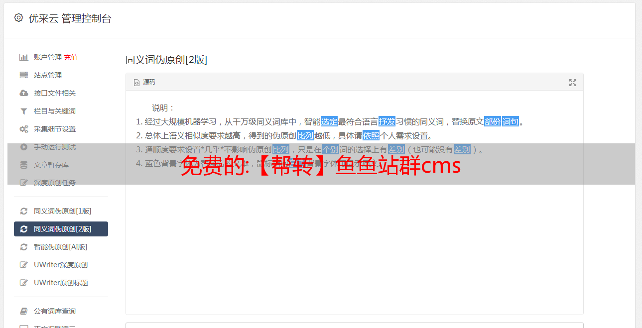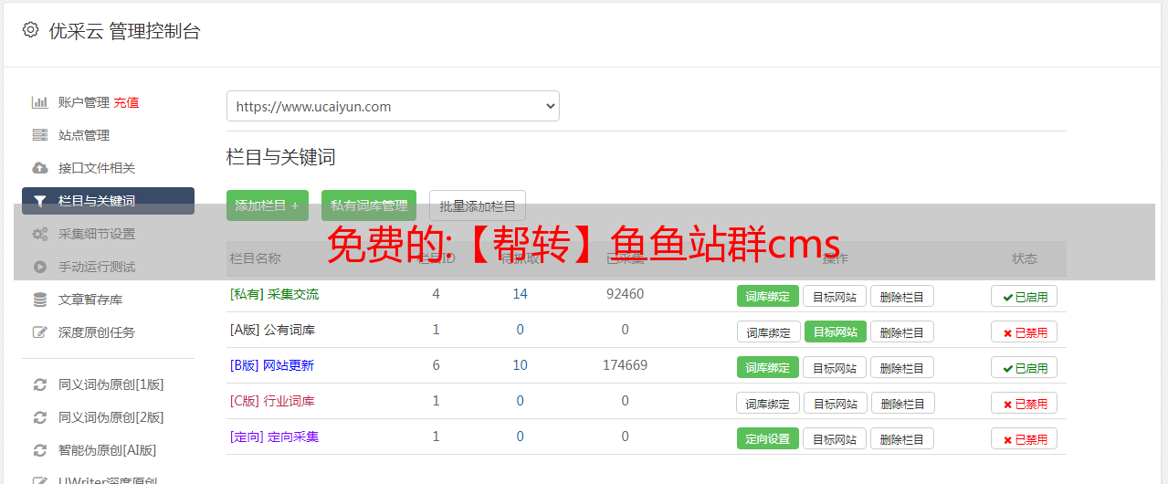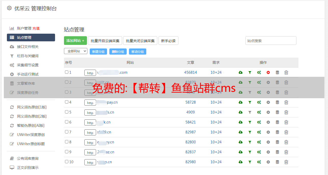 优采云 发布时间: 2022-10-22 05:13免费的:【帮转】鱼鱼站群cms