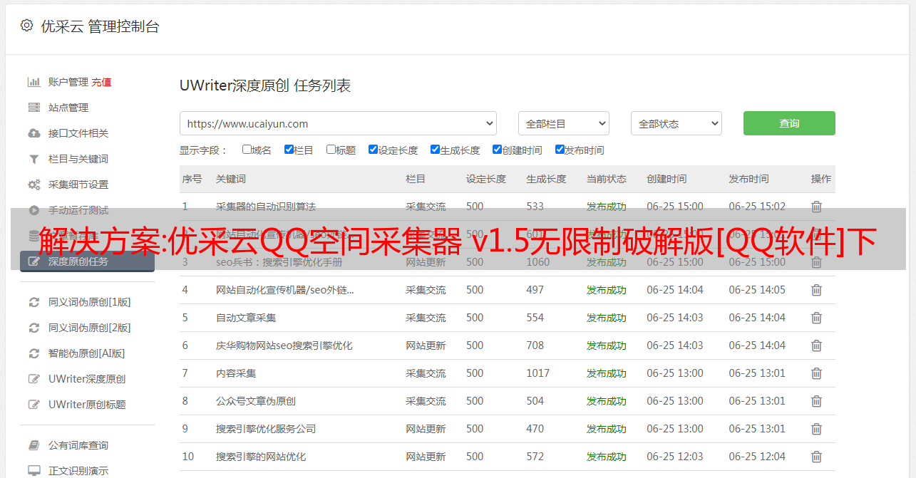 解决方案:优采云QQ空间采集器 v1.5无限制破解版[QQ软件]下载地址