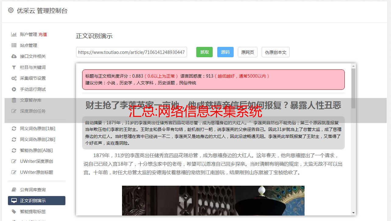 信息采集系统提供了一个平台,用于自动采集网页上的有效信息,以及
