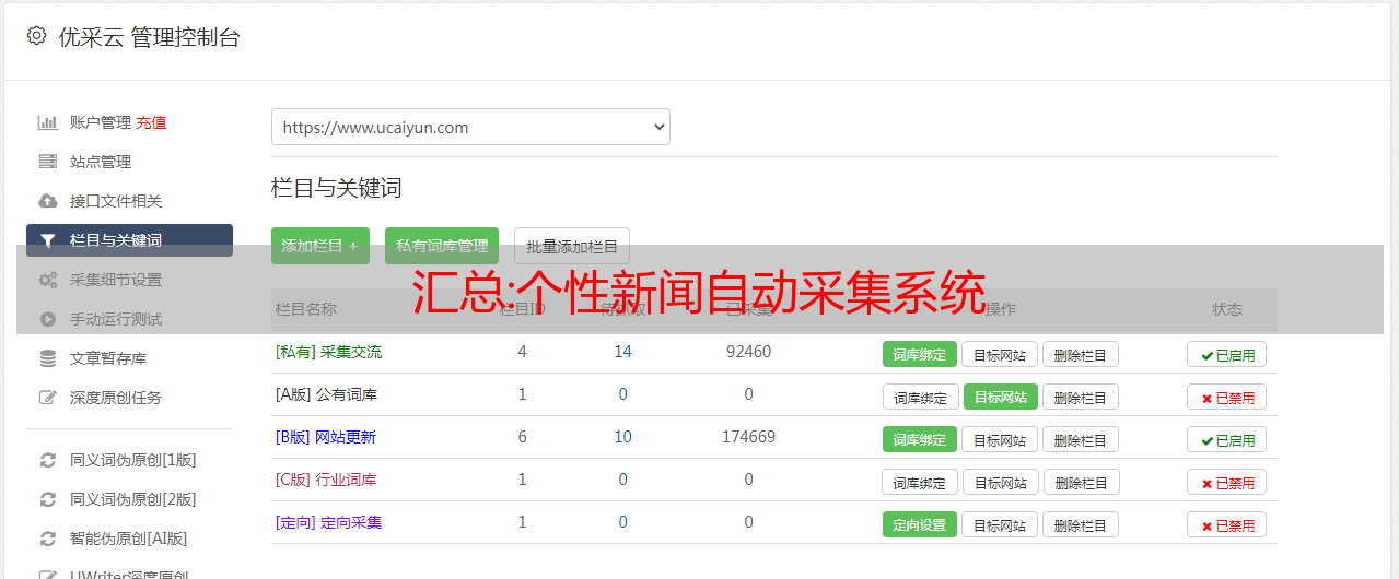 优采云 发布时间: 2022-10-24 17:41汇总:个性新闻自动采集系统